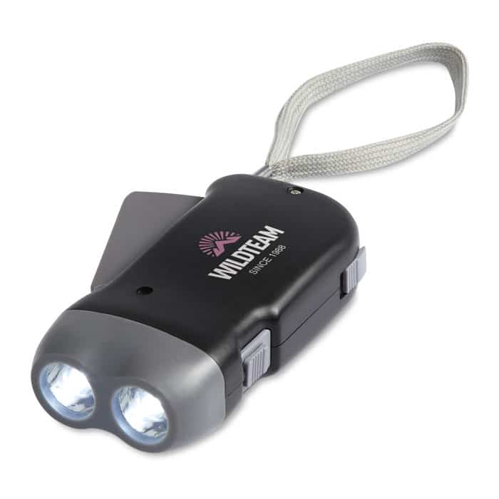 The 2 LED Dynamo Torch features a durable ABS body and comes complete with three AG10 batteries, making it a practical Promotional Dynamo Torch for everyday use. Its compact design ensures it fits easily in bags, drawers, or glove compartments, providing reliable light when needed.